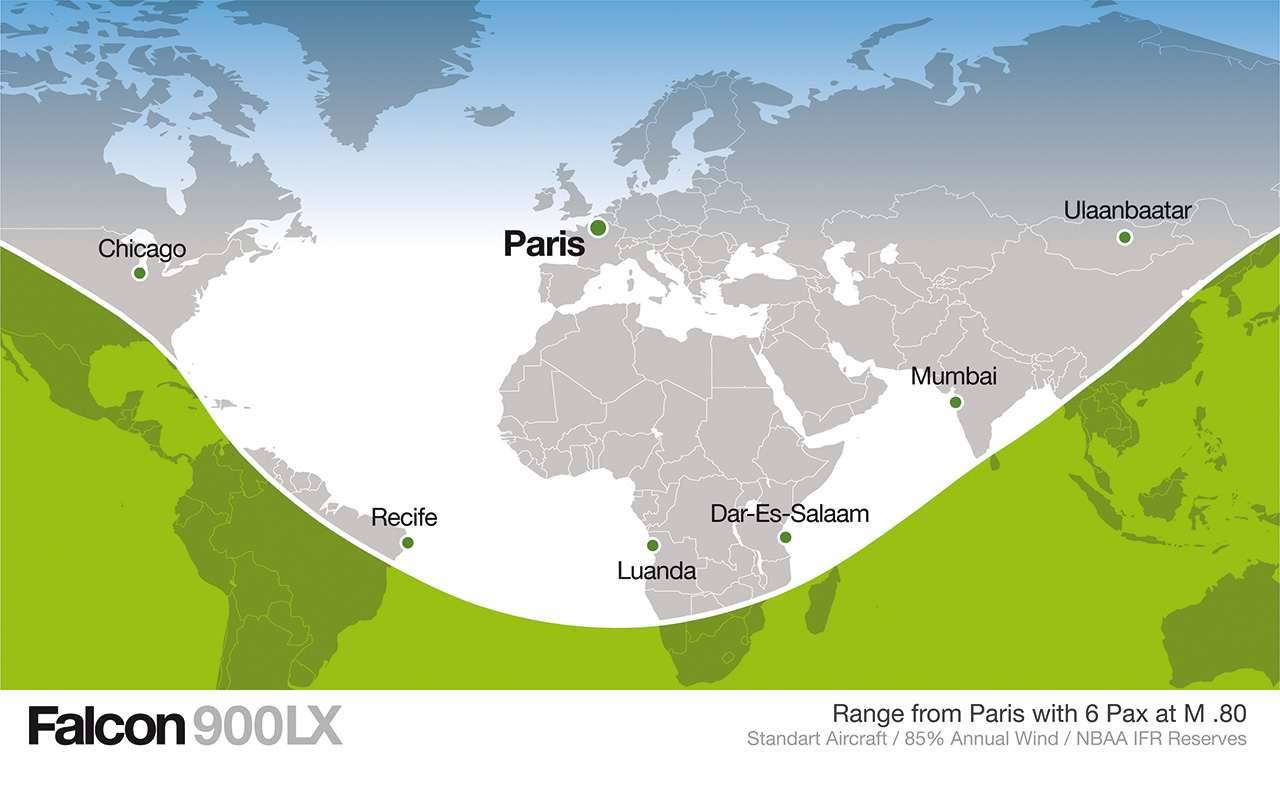 獵鷹900LX性能全面,集短途和長途飛行能力于一身。其超高效設計可實現連續飛行8,800公里,燃油消耗也低于其他飛機。